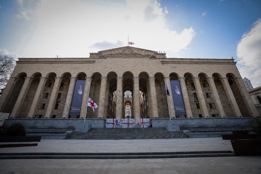 პარლამენტის სასახლეზე უწმინდესის და უნეტარესის, სრულიად საქართველოს კათოლიკოს-პატრიარქის, ილია II-ის ბანერი განთავსდა