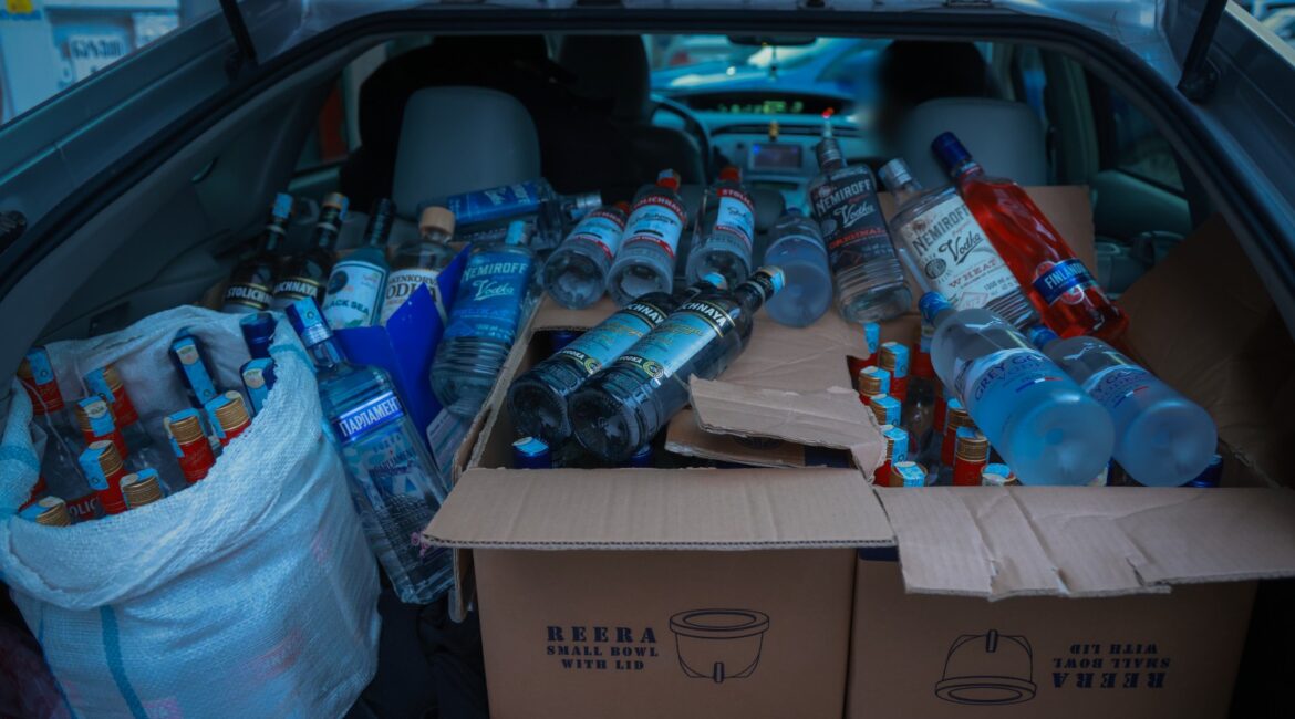 ოფისის, მის მიმდებარედ გაჩერებული ავტომანქანისა და სავაჭრო ობიექტების ჩხრეკის შედეგად ამოღებულია სხვადასხვა ბრენდული დასახელების, მათ შორის- „Stolichnaya“, „Nemiroff“, „Black Sea“, „Filandia“, „Talka“, „Koskenkorva Vodka“, „Parliament“ და „Gray Goose“ -საერთო ჯამში 204 ბოთლი ფალსიფიცირებული ალკოჰოლური სასმელი, ჩამოსასხმელად გამზადებული 402 ცალი ცარიელი ბოთლი, ალკოჰოლის ჩამოსხმისა და დამზადებისთვის საჭირო მასალები, 1 053 ცალი ყალბი აქციზური მარკა, აგრეთვე კომპიუტერული ტექნიკა, რომელშიც ელექტრონულად იყო განთავსებული ყალბი აქციზური მარკების ფაილები.