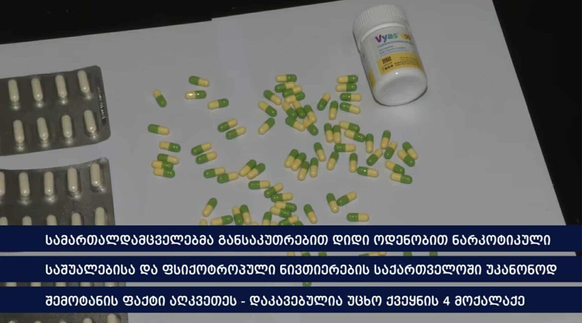 “განსაკუთრებით დიდი ოდენობით ნარკოტიკული საშუალებისა და ფსიქოტროპული ნივთიერების უკანონო შეძენა-შენახვის და საქართველოში შემოტანის ბრალდებით დაკავებული არიან: 2003 წელს დაბადებული მ.მ., 1998 წელს დაბადებული ა.ბ., 1981 წელს დაბადებული ჰ.დ. და 1993 წელს დაბადებული ბ.ფ.